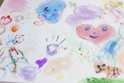 Begonnen hat der Mai recht kühl. Anfang Mai waren wir alle noch dick eingepackt und haben warme Sonnenstrahlen herbei gesehnt. Die Kinder wollten unbedingt mal auf einer großen Leinwand malen, so haben wir kurzerhand unsere Malsachen samt Leinwand mit in den Garten genommen und dort der leeren Leinwand Farbe verliehen. Die Kinder waren so vertieft in der Malerei, dass sie den ganzen Nachmittag damit verbracht haben.