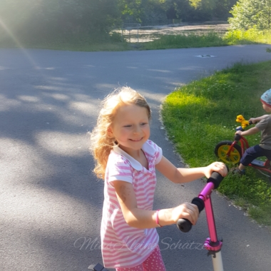 Endlich beginnt die Sommerzeit, zu mindestens theoretisch denn hier war es die letzten Tage grau, windig und ungemütlich. Gestern ließ sich dann die Sonne endlich wieder blicken und so haben wir den gestrigen Tag für einen kleinen Spaziergang genutzt. Ein gute Gelegenheit damit Matheo mit dem Laufrad fahren konnte, Leni wollte mit dem Fahrrad fahren und Stella mit dem Roller oder wie sie es sagt: „Mama, das ist kein Roller sondern ein Scooter.”